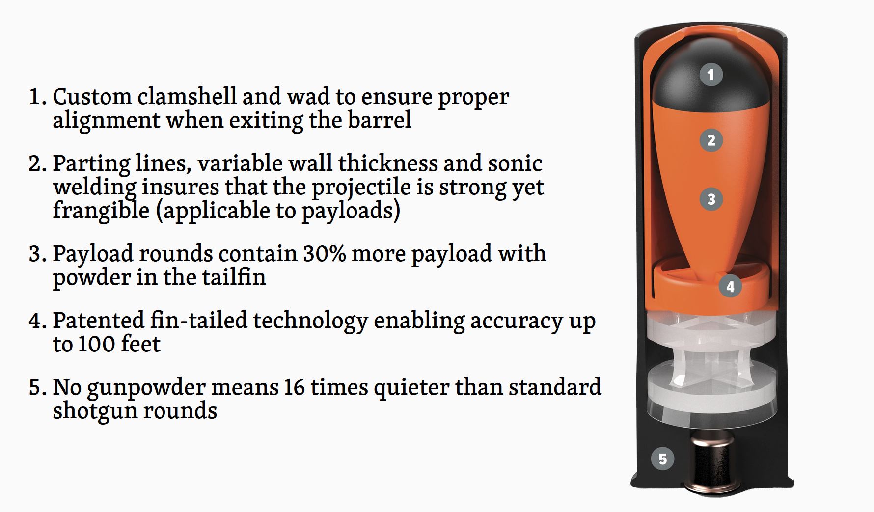 Turn your lethal shotgun into a less-lethal defense tool with Byrna® Kinetic Shotgun Ammo. 2.5" clamshell is compatible with virtually all 12-ga. shotguns. Once fired, the clamshell splits to reveal a .61-caliber kinetic projectile, fin-stabilized for accuracy out to 100 ft. Strikes the target with 20 joules of energy, and capable of breaking automotive glass.