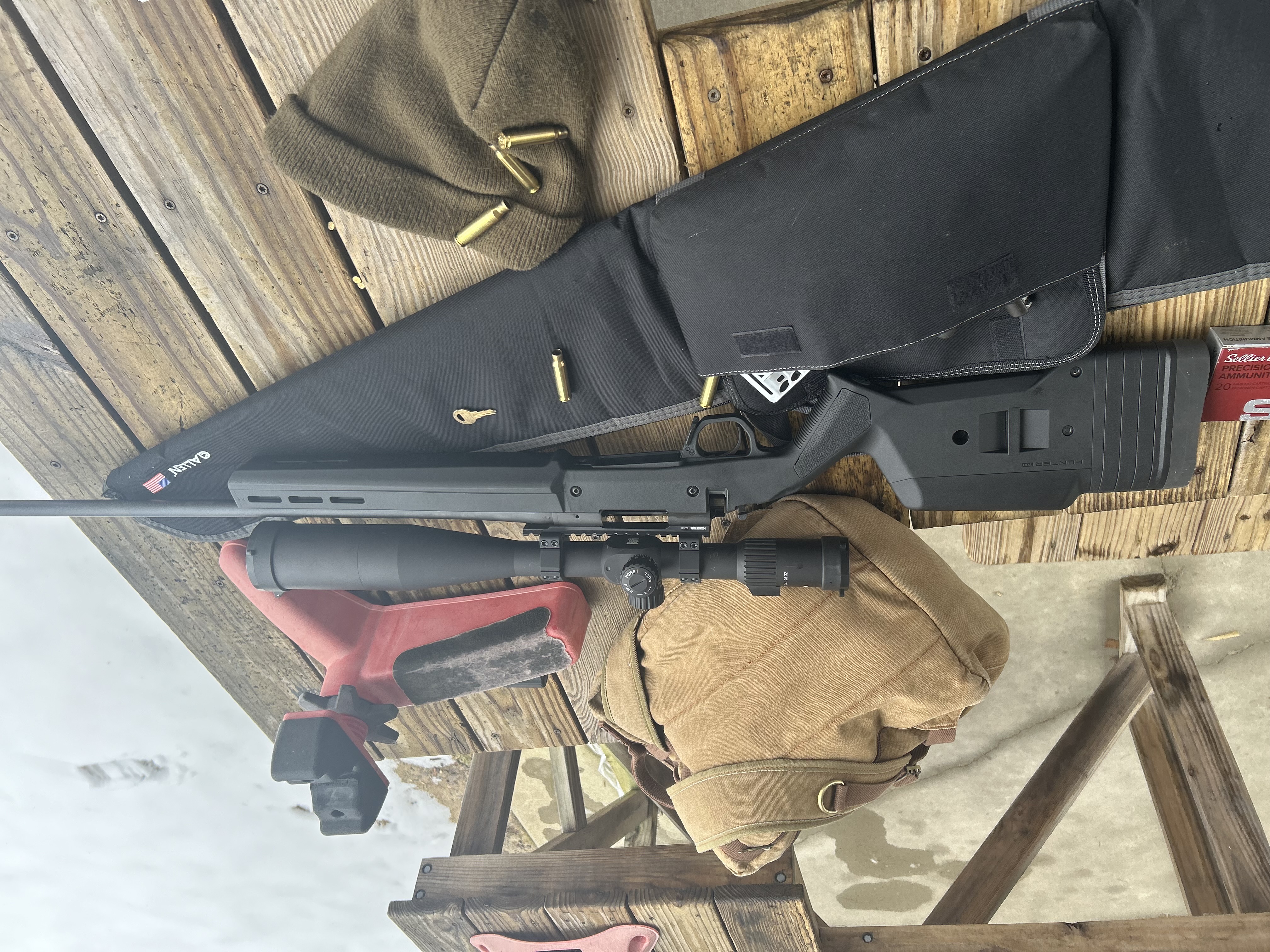 Slapped another Monstrum scope on my F-tier R700 BDL in a magpul hunter stock. This did not disappoint. Shot sub-moa groups at 100yards. I'm sure it'll be fine at 200y & 300y. Only ammo out of the box that matched and exceeded the reloads I've shot. Groups were shot off the red plastic red in the photo (attached) and a backpack I had in my car.